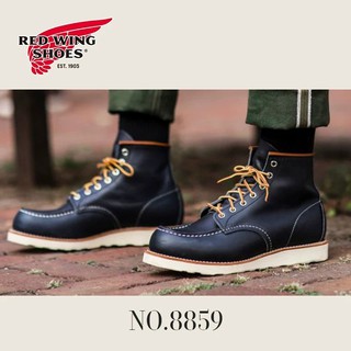 Release date Popularity Minimum price Maximum price Product description. Red Wing 8859 6-inch Classic Moc in Navy Portage leather features Traction Tred outsole all-around Goodyear welt and Puritan triple stitch with distinctive gold tan Taslan laces.